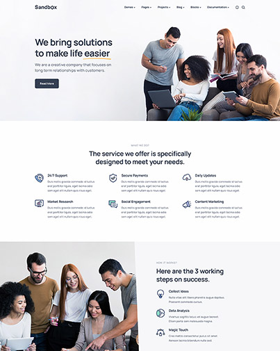 Build your website using the powerful features of Sandbox